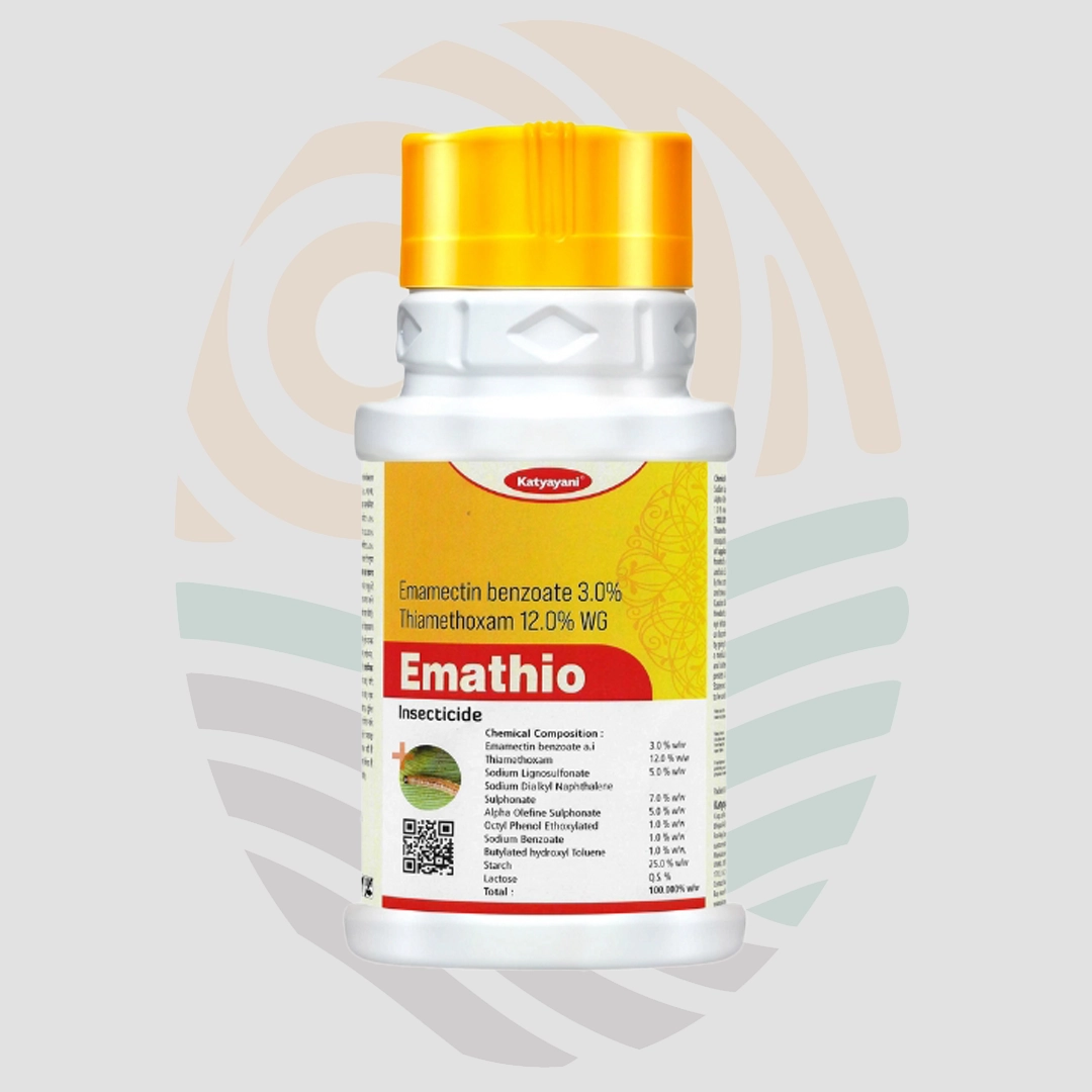 Katyayani EMATHIO is a versatile insecticide that tackles both chewing and sucking pests while offering long-lasting protection and rain-resistance. It's a great choice for farmers and gardeners looking for a powerful yet balanced pest control solution.